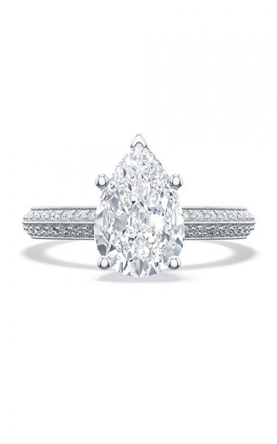 Sylvie's Halo Engagement Ring Collection is also a gorgeous selection that can be found at Rumanoff's Jewelers. The pear-shaped rings in this collection are intended to take your breath away, with their pear-shaped diamond centerpiece and supporting gemstones. However, Sylvie also breaks the mold with their unique yet genuinely brilliant design choices creating something entirely new and unlike other pear shaped rings. Based out of California, the designer TACORI brings unmatched quality design and fashion to pear shaped rings. Their Dantela Collection carries bands that are ready for your perfect pear shaped ring, with the pear surrounded in diamond in a halo style with diamonds also going along the band itself. Simply TACORI elevates this with its simple solitaire halo ring, putting your diamond at the forefront.