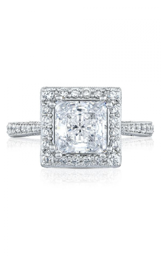 For a look that really emphasizes the shape of a princess-cut diamond, turn to the Reverse Crescent collection from TACORI. In addition to the bold platinum right-angle prongs at the corners of the princess-cut center stone, these rings also boast entire rows of princess-cut side stones and stunning crescents along the sides of the ring. This style allows light to shine through the underside of the rings' diamonds! The Halo collection from Fana features diamond-studded halos that charmingly complement the princess cut, and a fiance-to-be can also find some elegant looks that utilize emerald-cut diamonds to add their angular chic to the overall look of the ring.